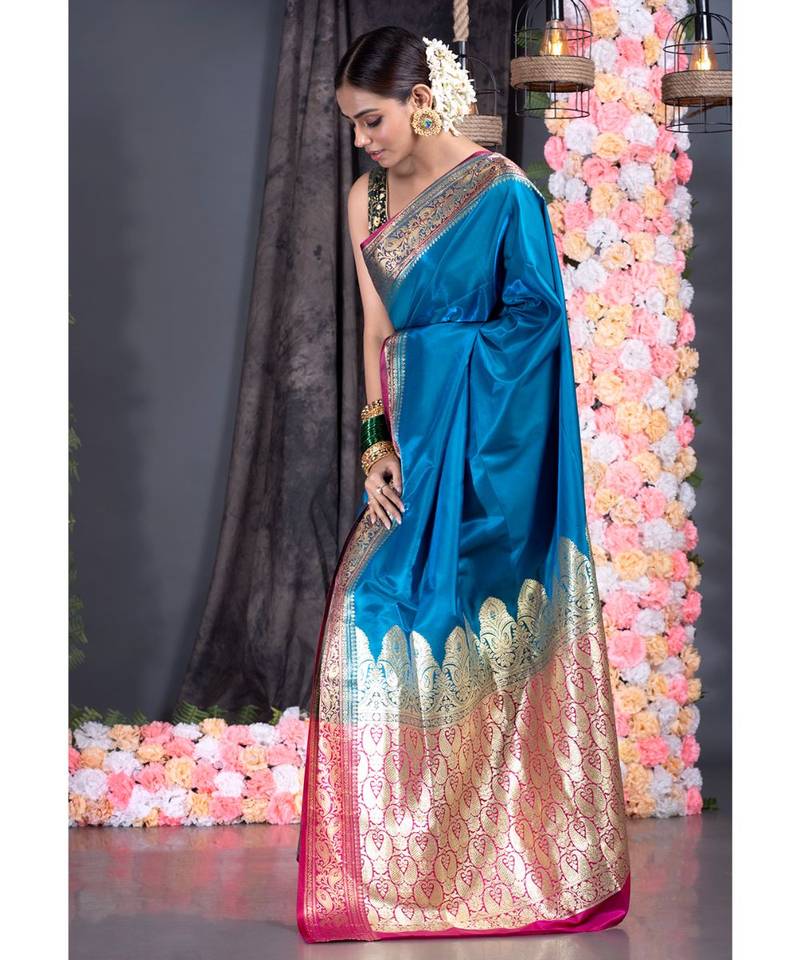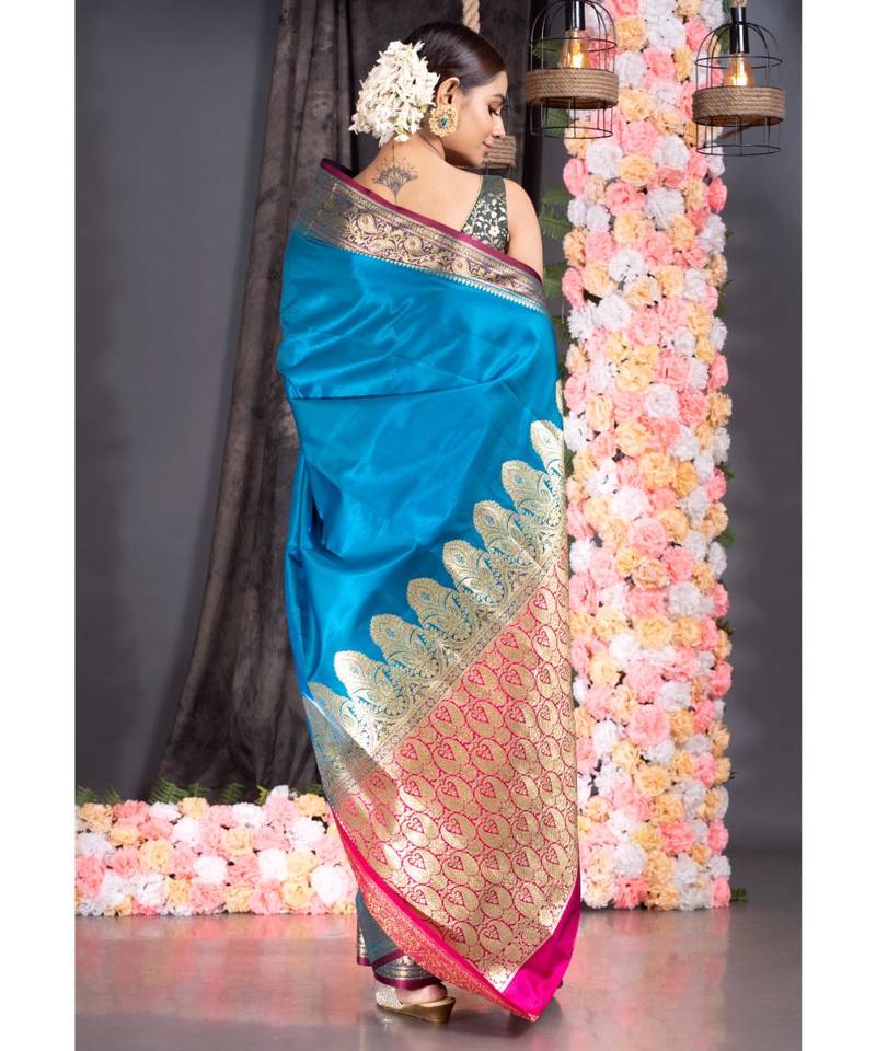 | Product Name | Peacock Blue Banarasi Saree With Golden Border And Pallu | |