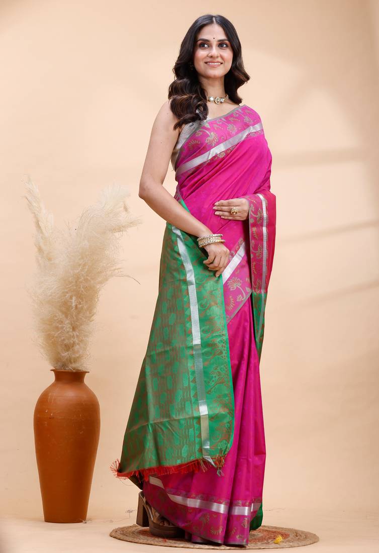 | Product Name | Pink And Green Kanjivaram Silk Saree | |