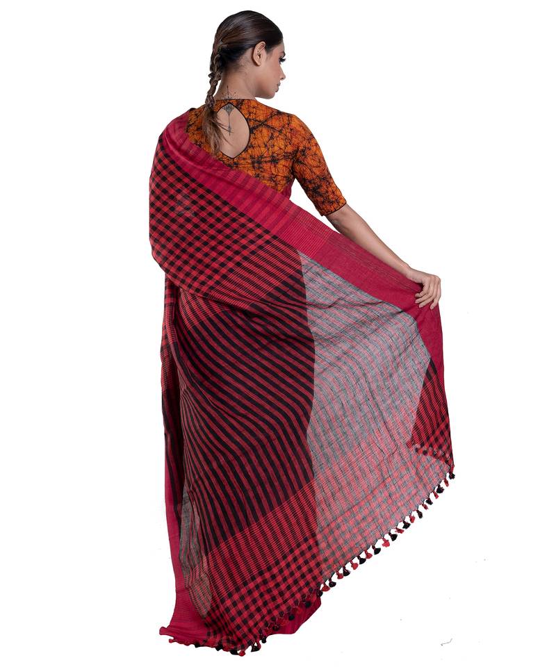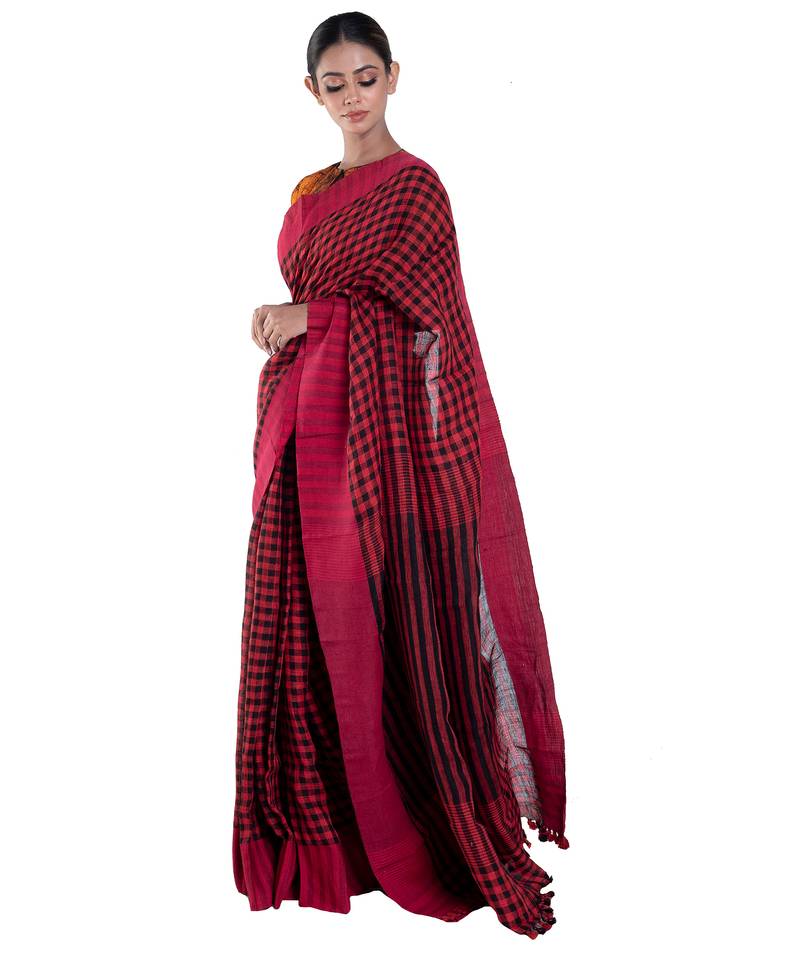 | Product Name | Red And Black Checkered Handloom Linen Saree | |