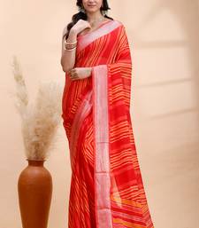 | Product Name | Red Chiffon Saree With Elegant Striped Weave And Subtle Silver Border Detailing | |