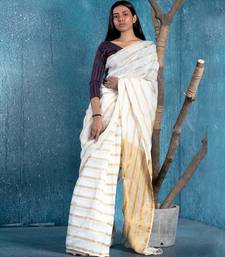 White and gold handloom linen saree