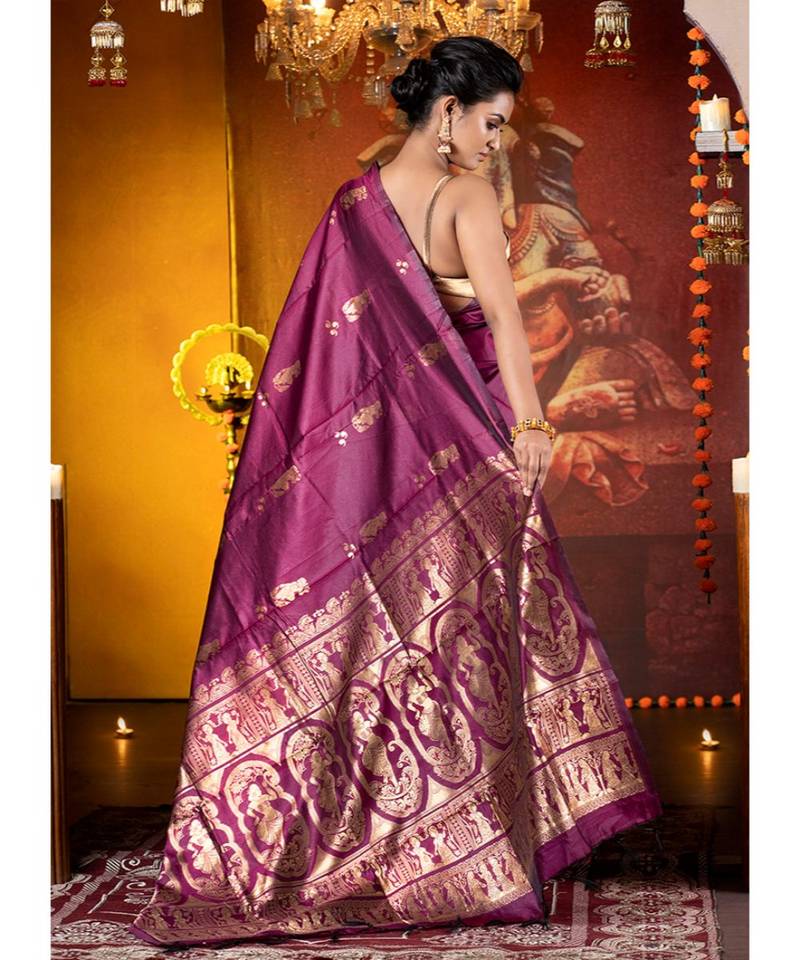 Wine and gold baluchari silk saree