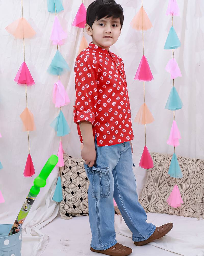 Full sleeves bandhni short kurta for boys red