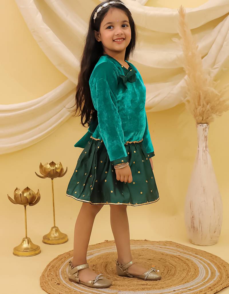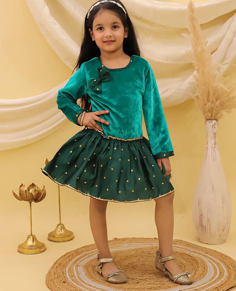 | Product Name | Full Sleeves Velvet Party Dress For Girls Green | |