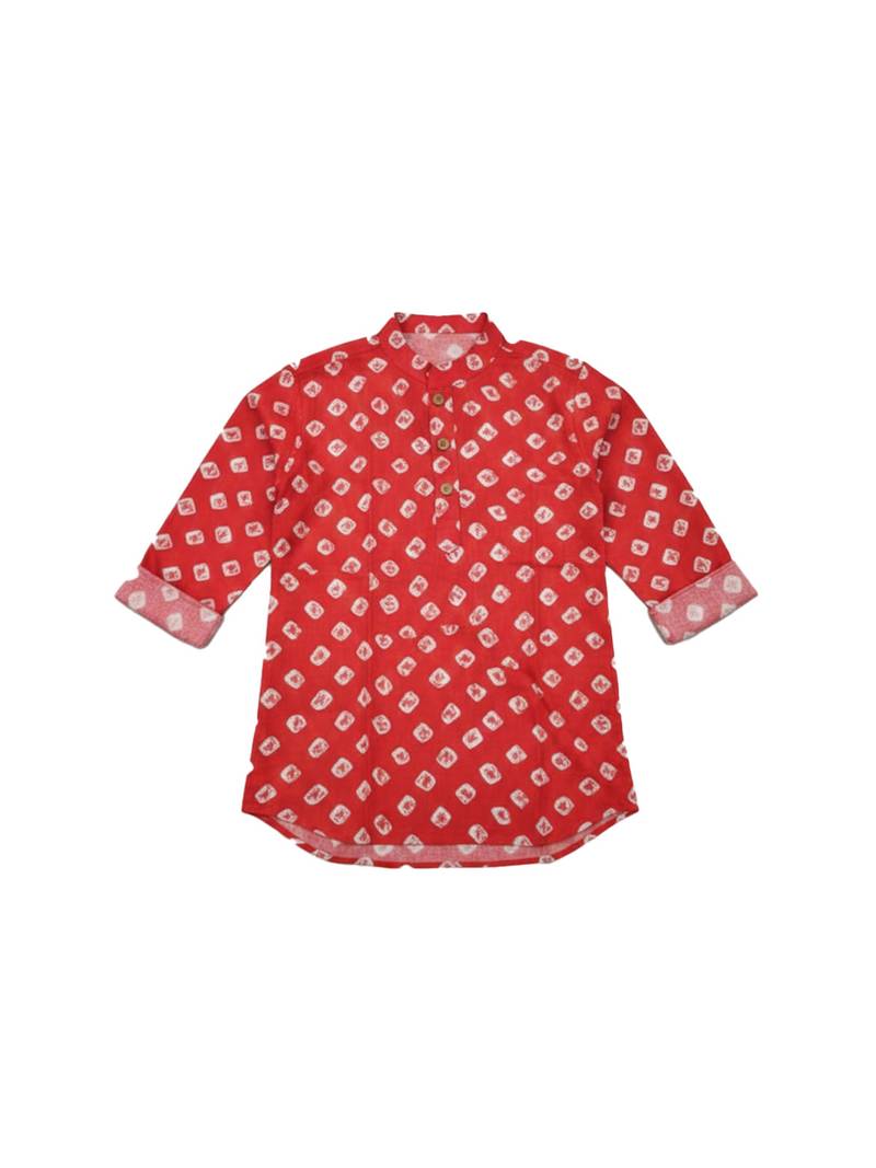 Fullsleeves bandhni short kurta for infant boys red