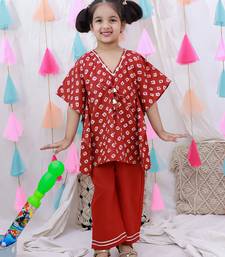Pure cotton badhani kaftan & plazao set for girls red
