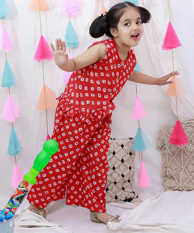 | Product Name | Pure Cotton Badhni Crop Top With Plazao Set For Girls Red | |