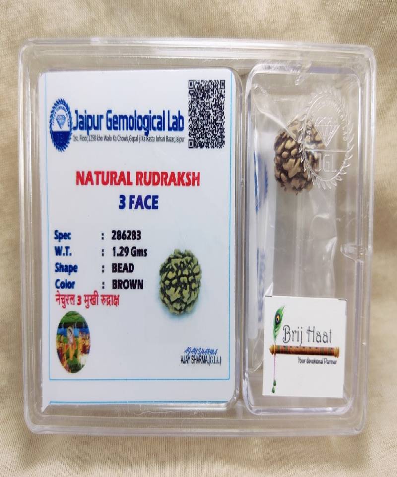Certified Rudraksha Bead With Lab Tested Certificate (3 Mukhi)