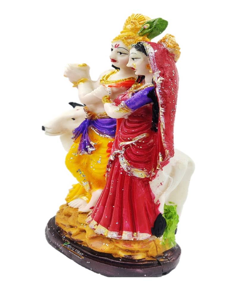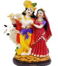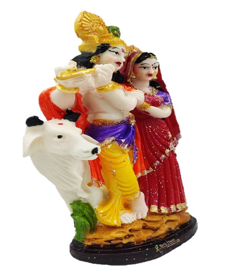 Polyresin radha krishna with cow playing flute showpiece big @21cm (multi)