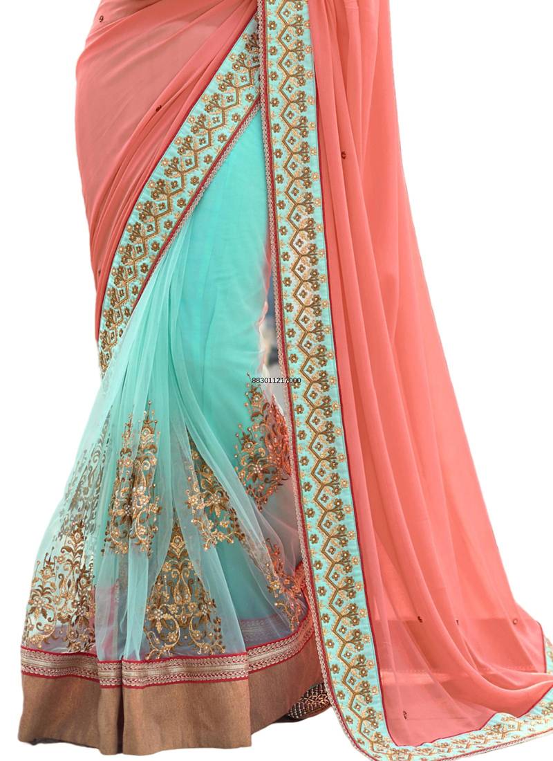 Brijraj Multicolor Coloured Net Party Wear Embroidered With Unstitched Blouse