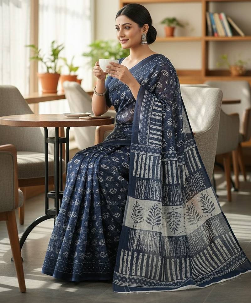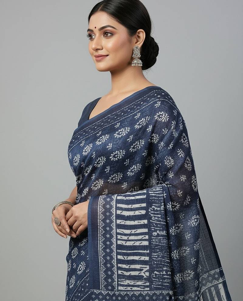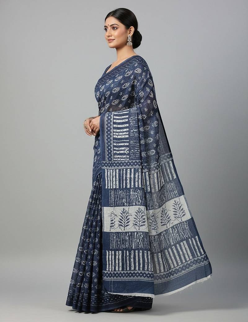 | Product Name | Blue Fancy Cotton Handloom Saree With Blouse Piece For Women | |