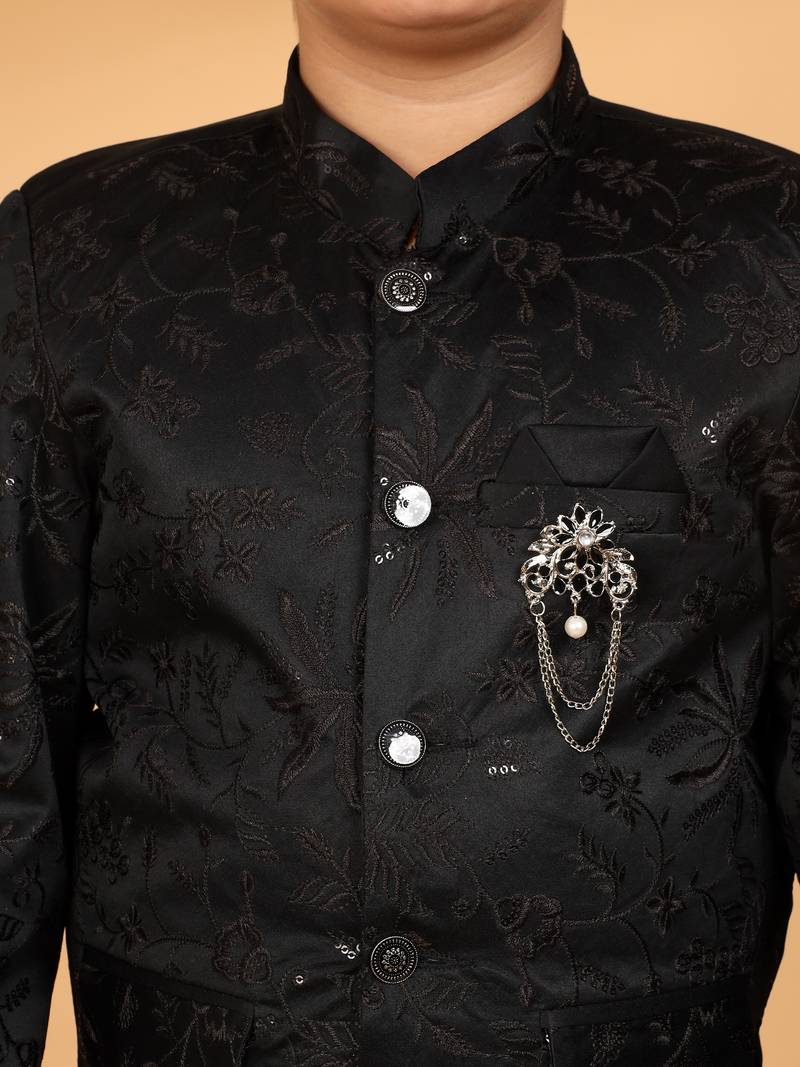 | Product Name | Boys Black Satin Floral Embroidered Bandhgala Set | |