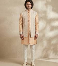 Beige embroidered raw silk kurta set