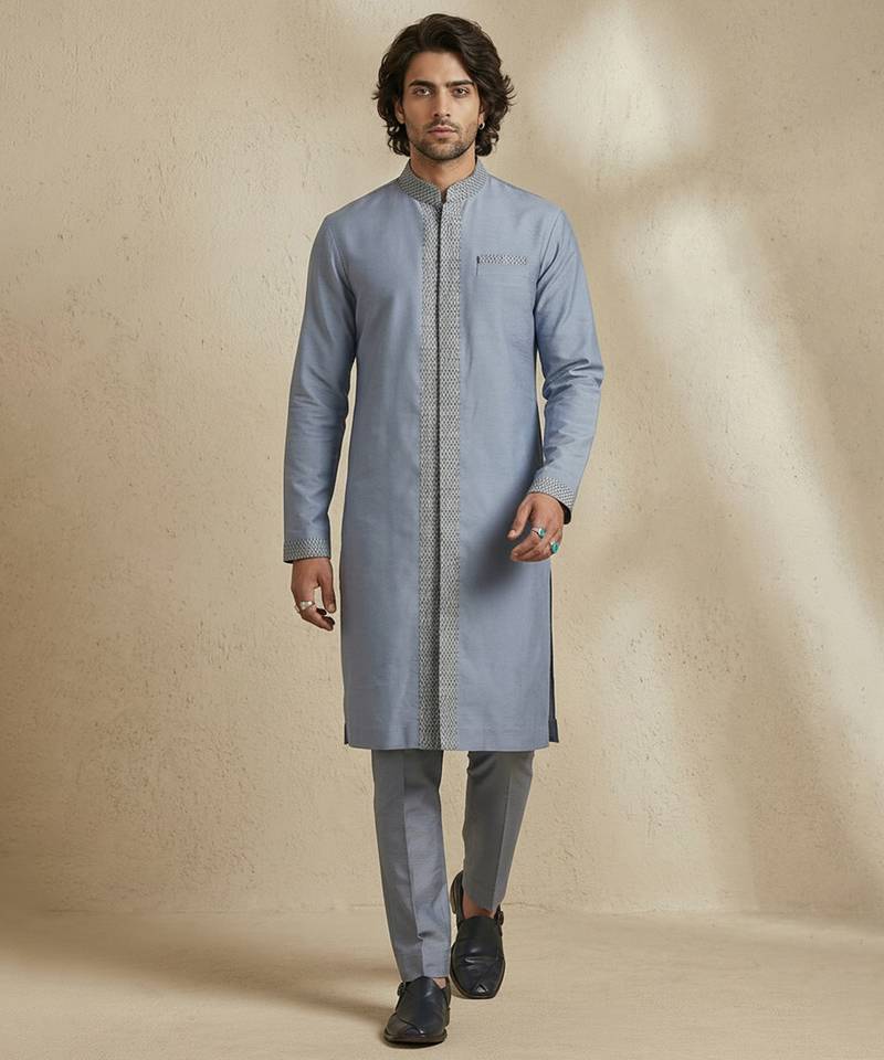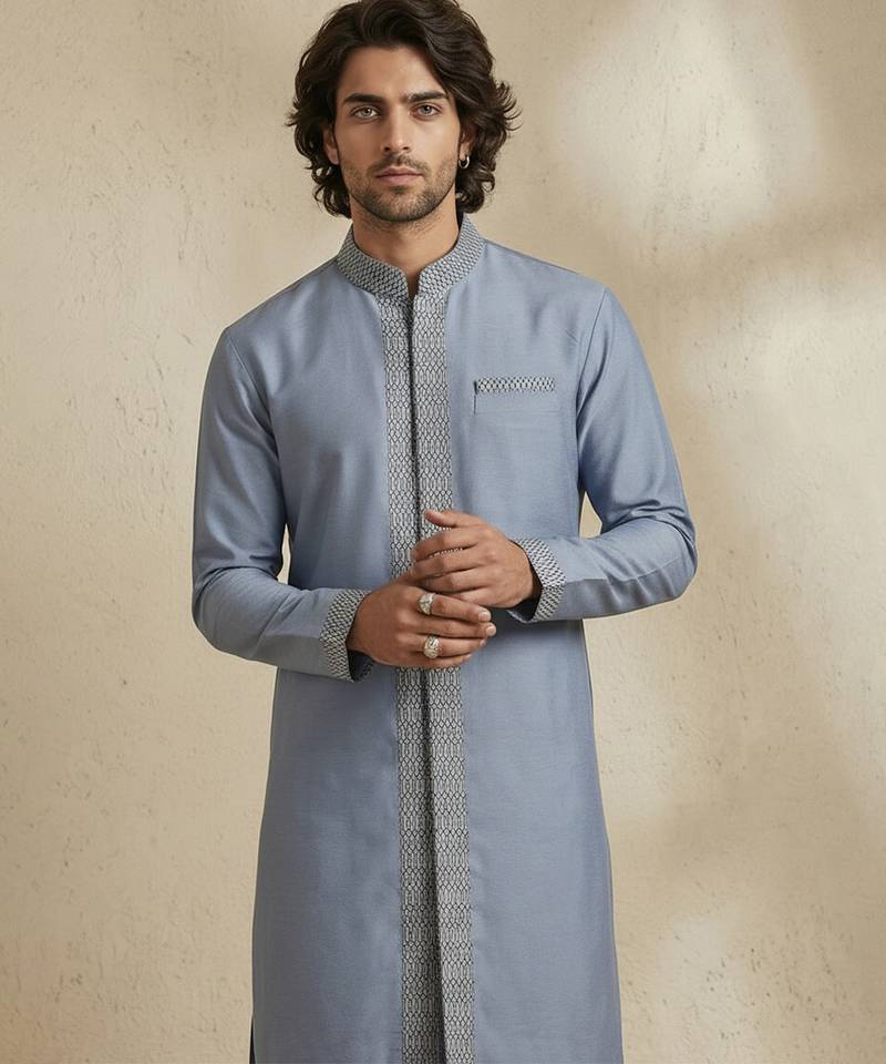| Product Name | Blue Embroidered Cotton Silk Kurta Set | |