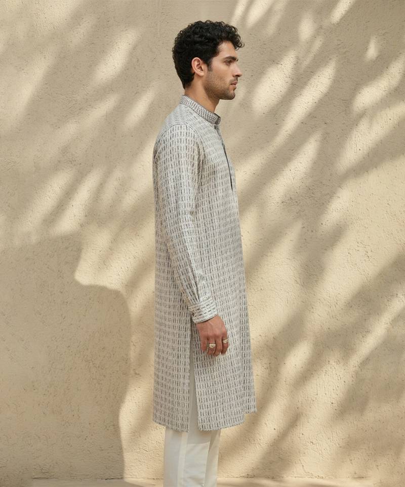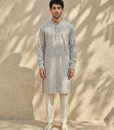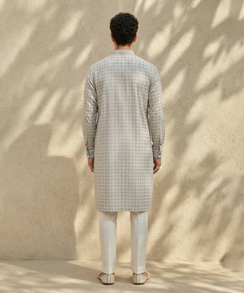 Grey woven cotton kurta set