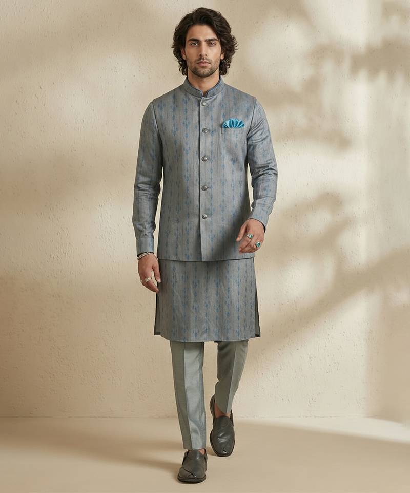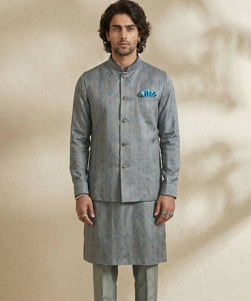 | Product Name | Grey Woven Silk Nehru Jacket | |