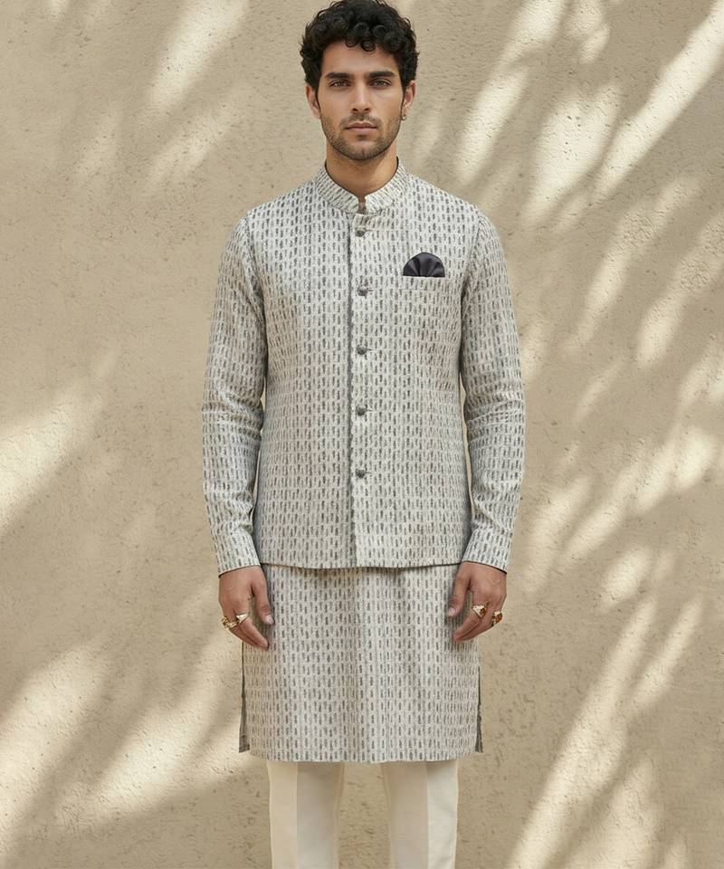 | Product Name | Ivory Woven Cotton Nehru Jacket | |
