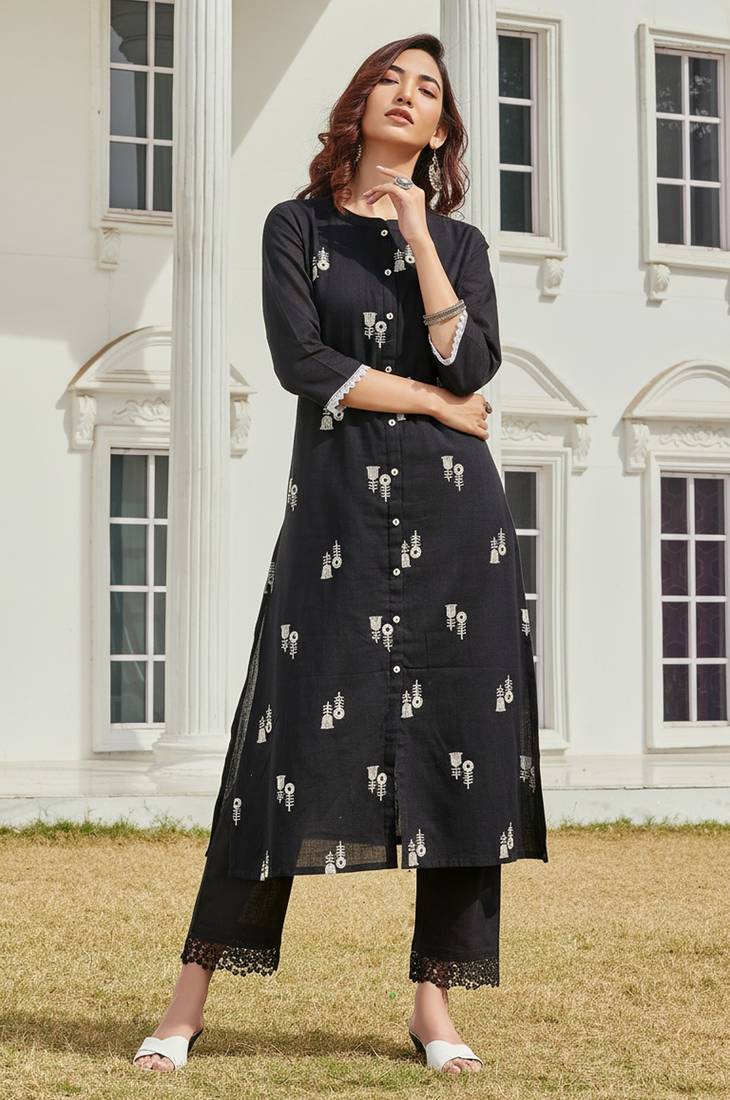 | Product Name | Black Cotton Embroidered Kurta Set | |