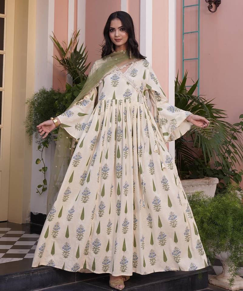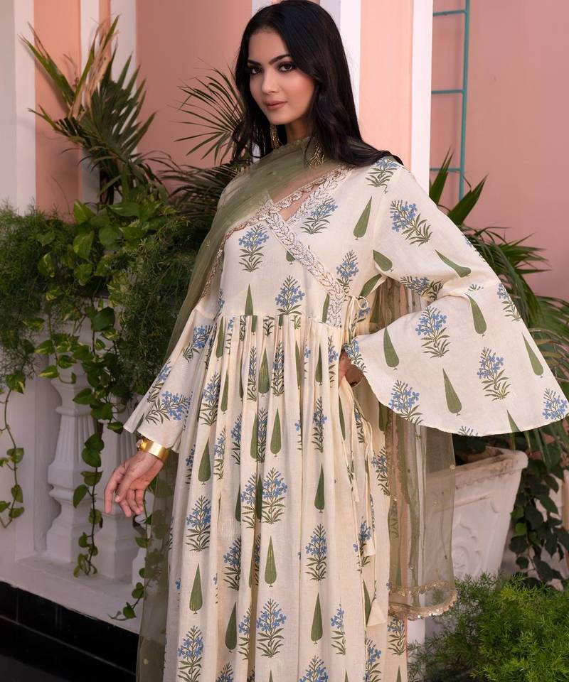 | Product Description | Angrakha Yellow Cotton Cambric Anarkali