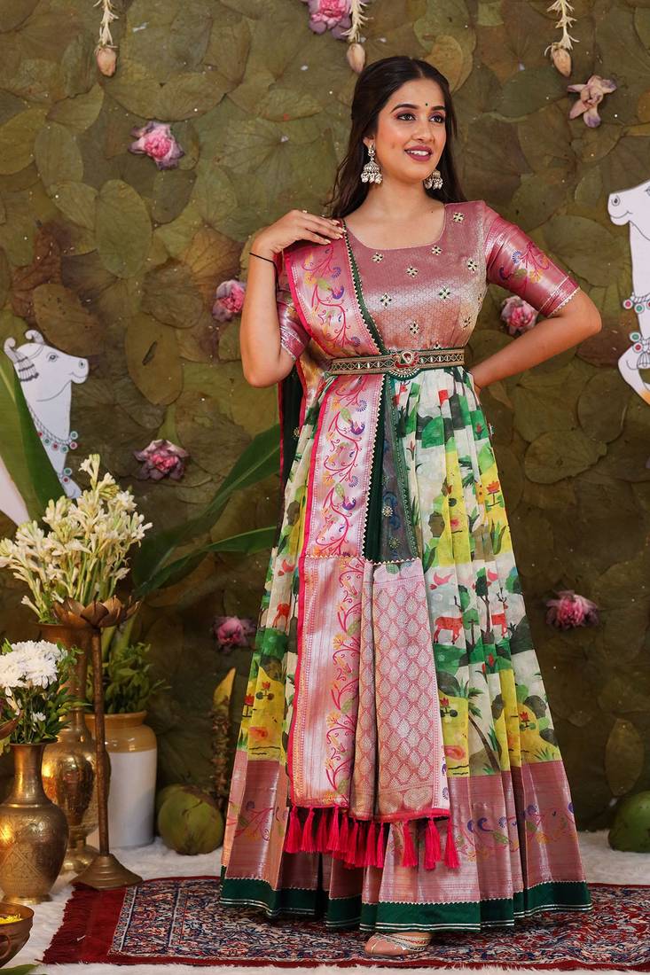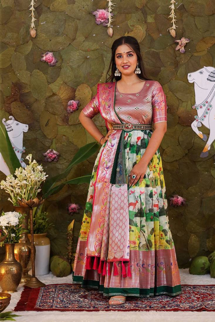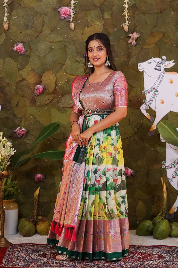 | Product Name | Bk Nandini Pattu Dress With Dupatta And Belt Set | |