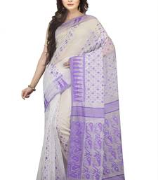 White plain cotton silk saree