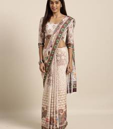Multicolor printed linen saree with blouse
