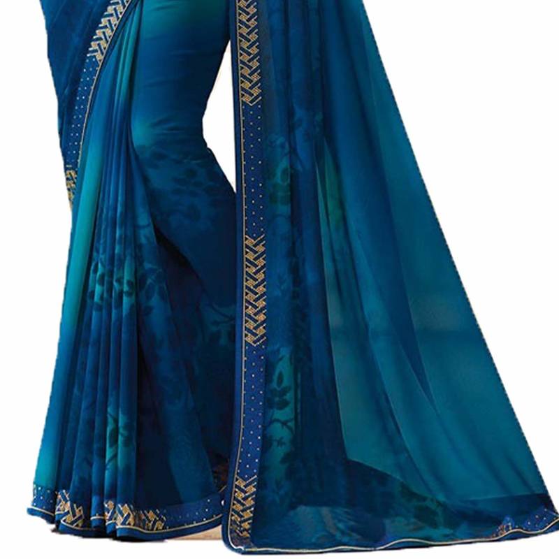 | Product Name | Blue Printed Silk Blend Saree With Blouse | |