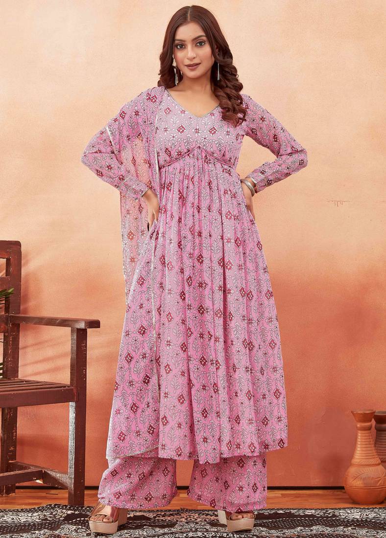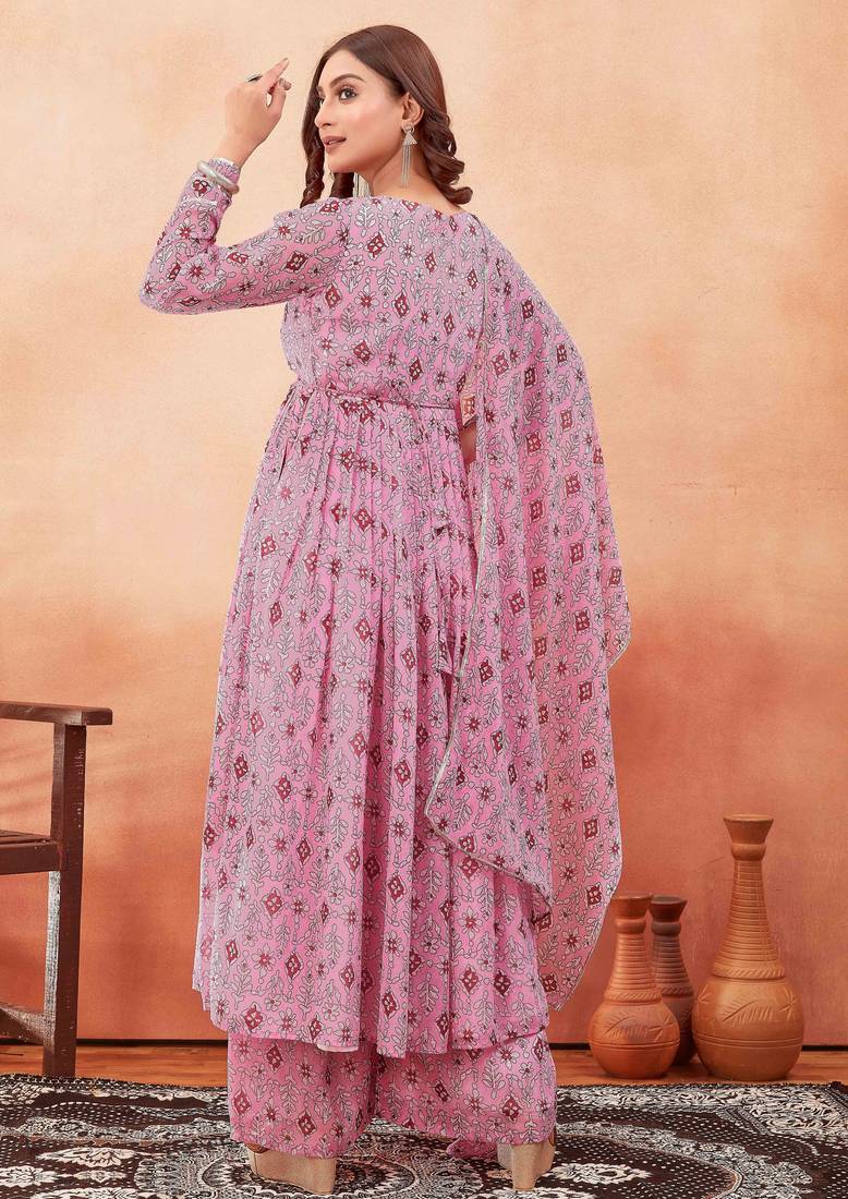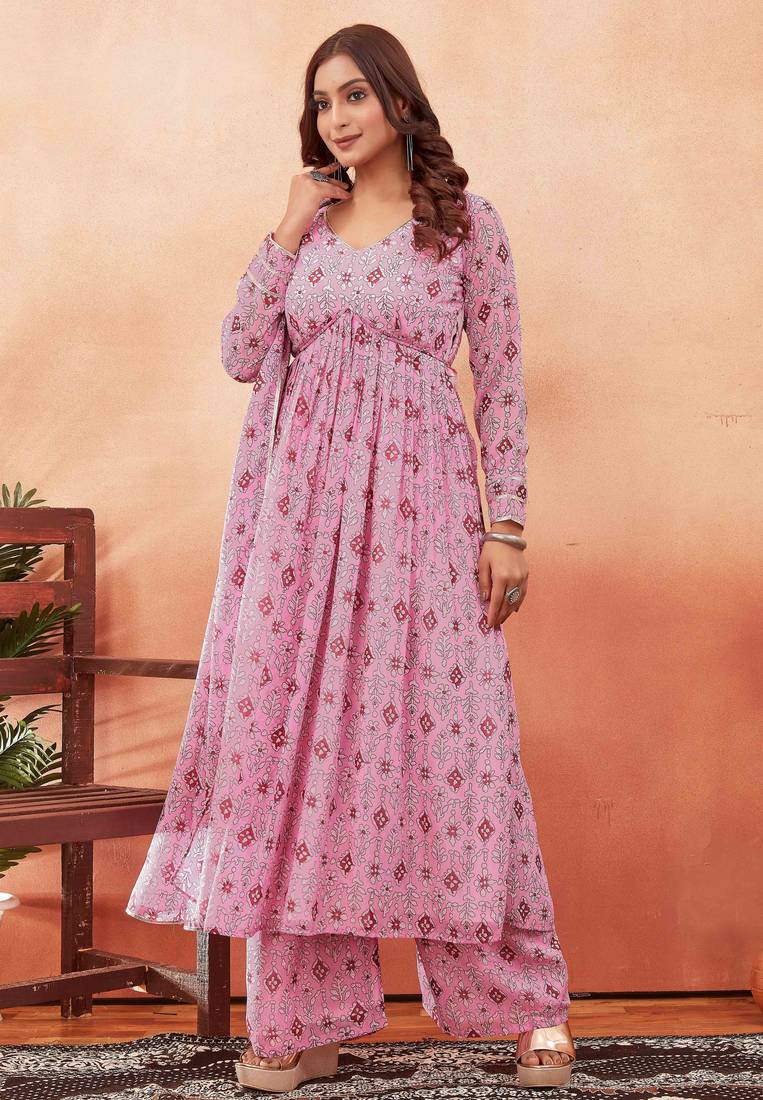 | Product Name | Pink Ethnic Print Georgette Kurta Set For Women | |