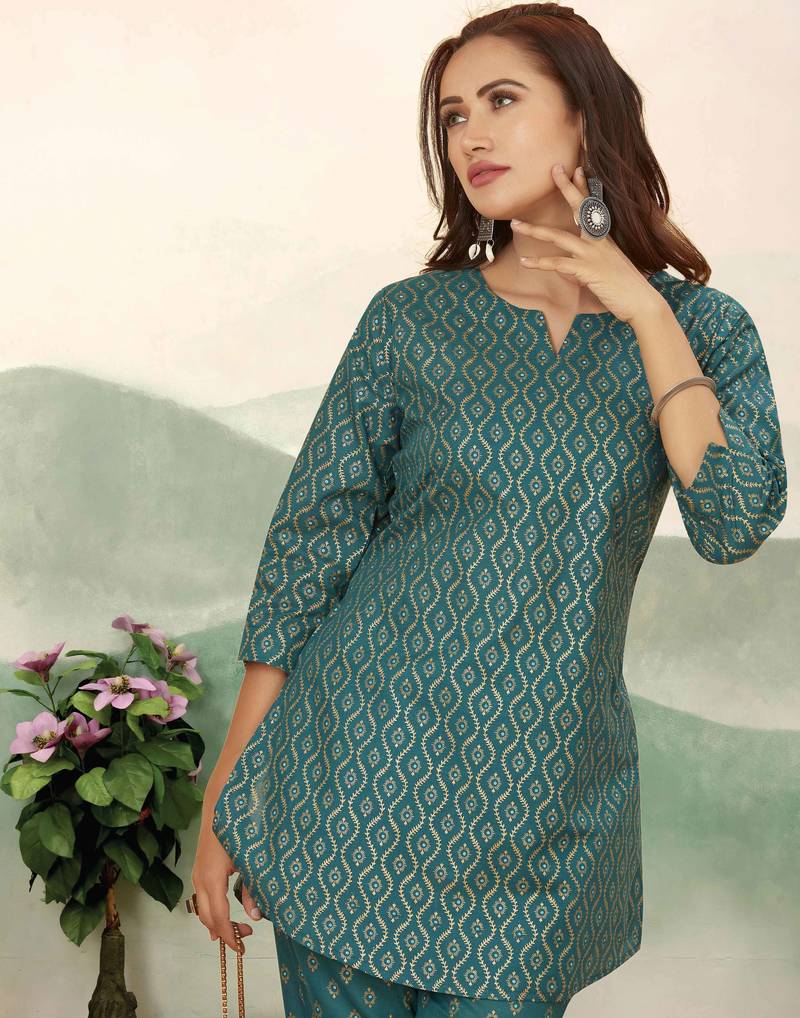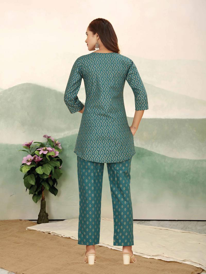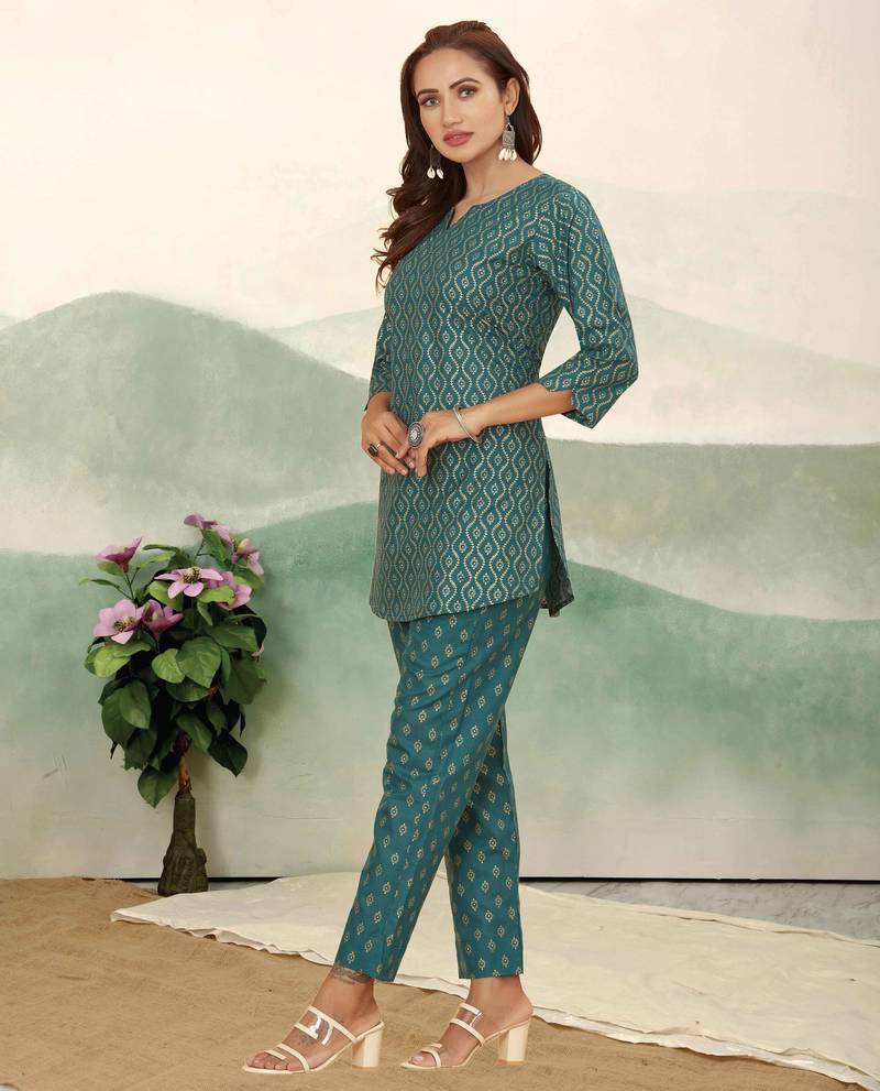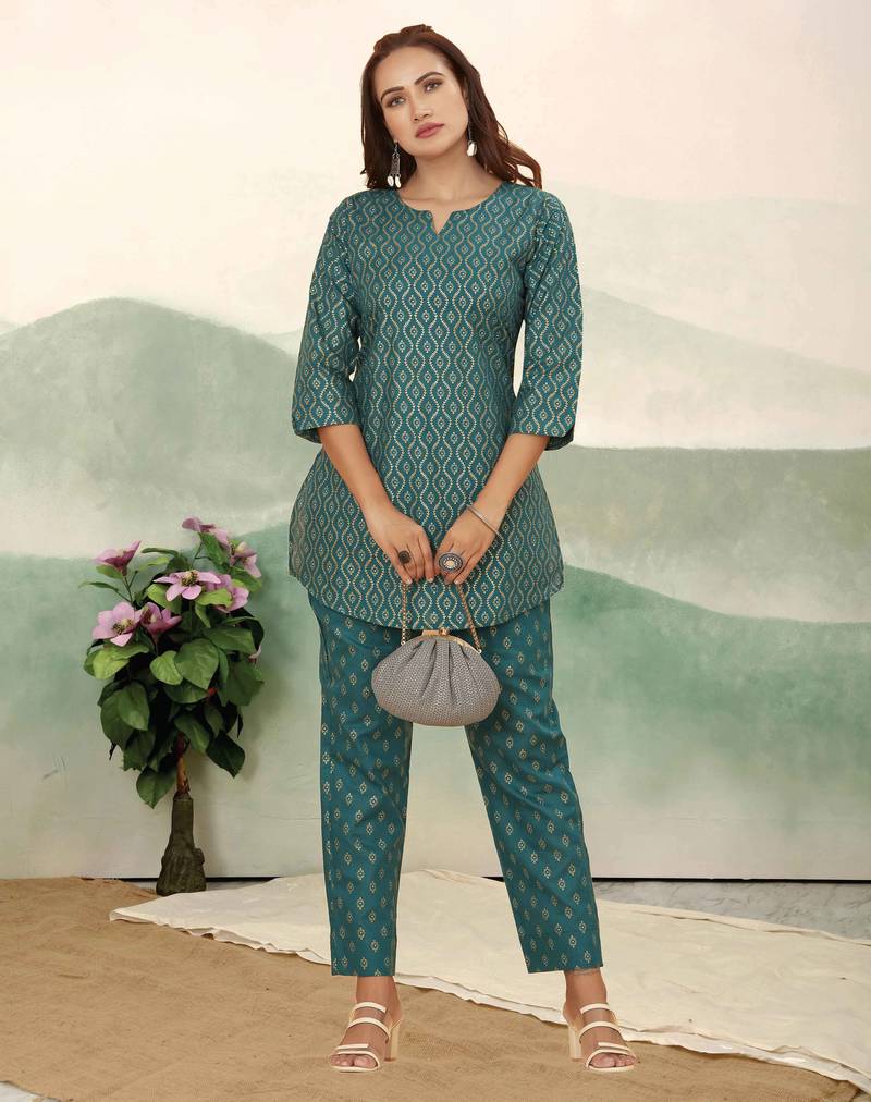 | Product Name | Teal Green Ethnic Print Cotton Blend Co Ord Set For Women | |