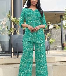 | Product Description | Elevate Your Everyday Wardrobe With This Elegant Green Printed Indo Western Co Ord Set, Featuring A Straight Fit Kurta With A Subtle V Neck And Three Quarter Sleeves, Paired With Matching Wide Leg Pants. Crafted In A Comfortable, Breathable Fabric, The All Over Paisley Inspired Print Adds A Refined Yet Contemporary Touch, Making It Perfect For Day Outings, Brunches, Casual Gatherings, Or Resort Wear. Designed For A Relaxed And Flattering Silhouette, This Co Ord Set Blends Comfort With Effortless Style, Offering A Versatile Look That Can Be Dressed Up With Statement Accessories Or Kept Minimal For Everyday Elegance. |
