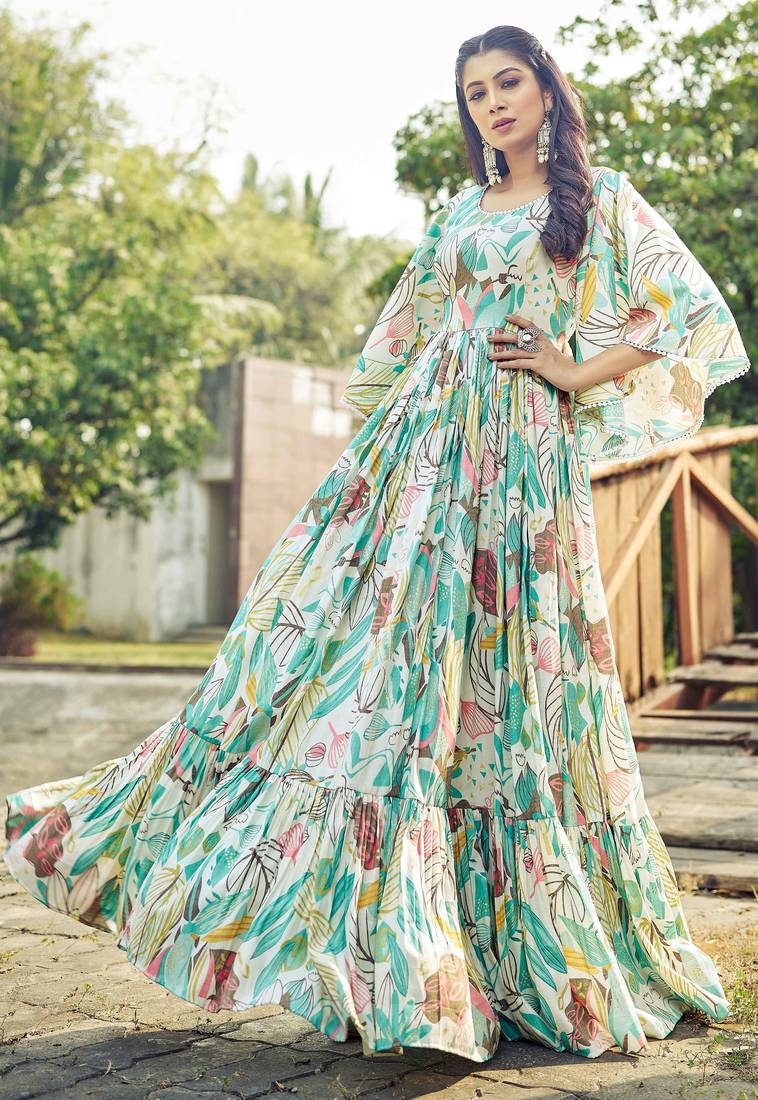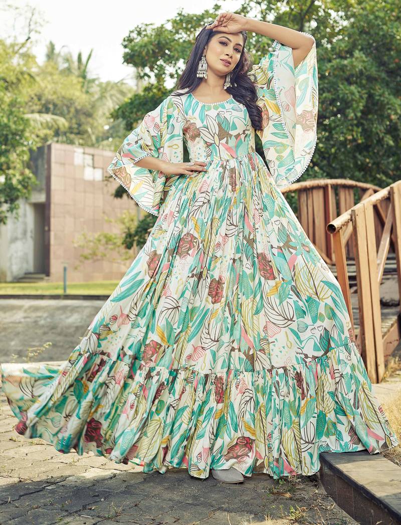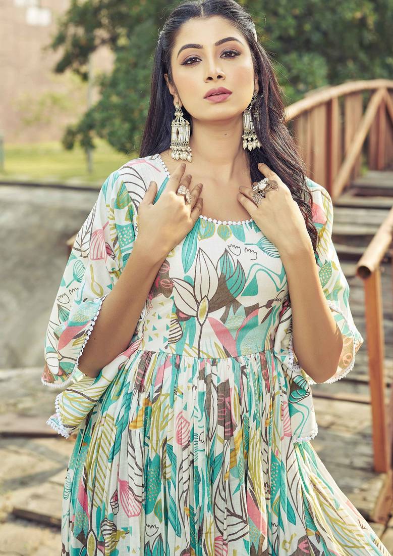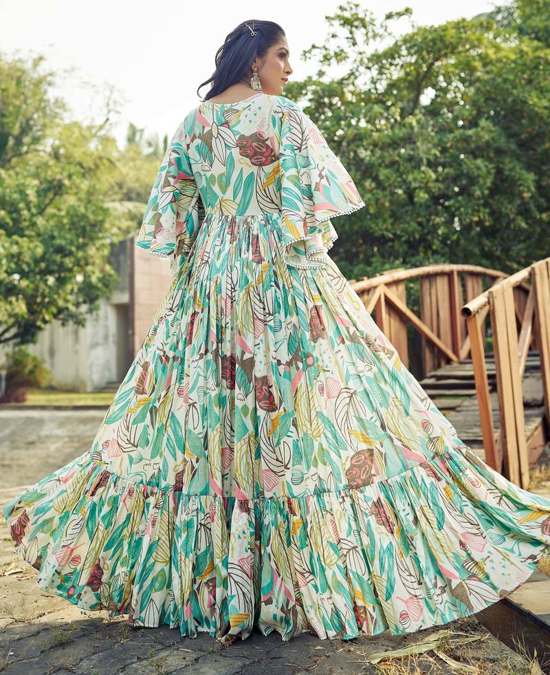 | Product Name | Women Off White Tropical Leaf Printed Flared Maxi Dress | |