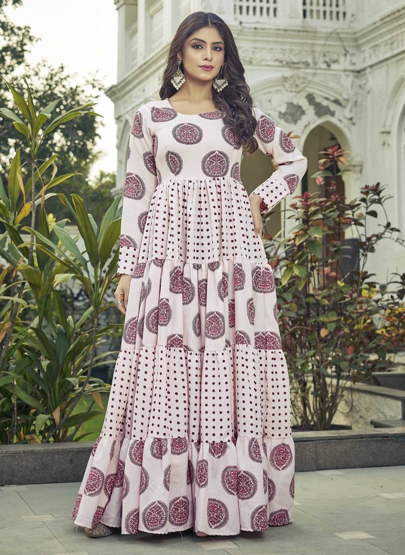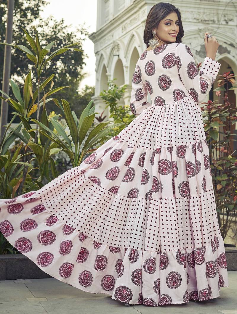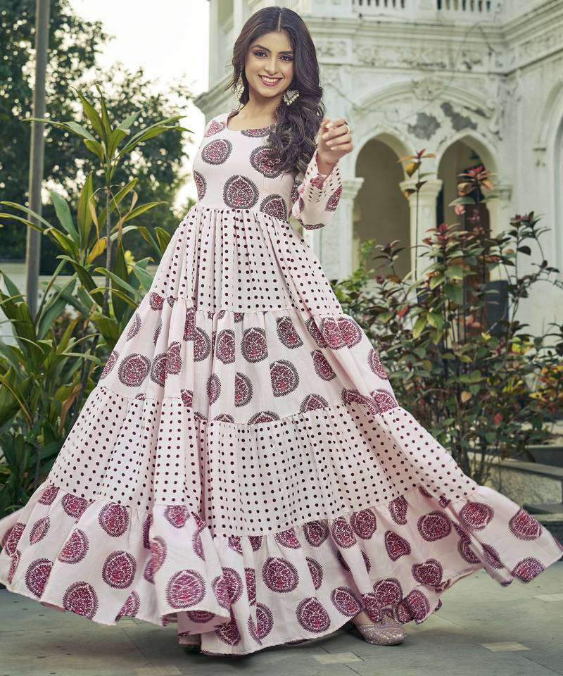 | Product Name | Women Pink Block Printed Tiered Anarkali Maxi Dress | |