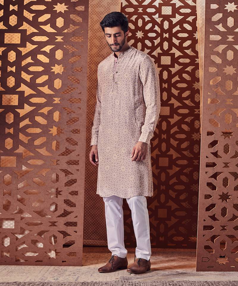 | Product Description | Our Classic Straight Kurta In Soft Sheen Printed Crepe Is The Perfect Occasion Wear. The Kurta Crafted In Beautiful Bespoke Print In Soft Palette. It Features Antique Metal Buttons On Placket And Is Paired With Cotton Pants. It Can Be Paired With A Nehru Jacket To Portray An Edgy Look |