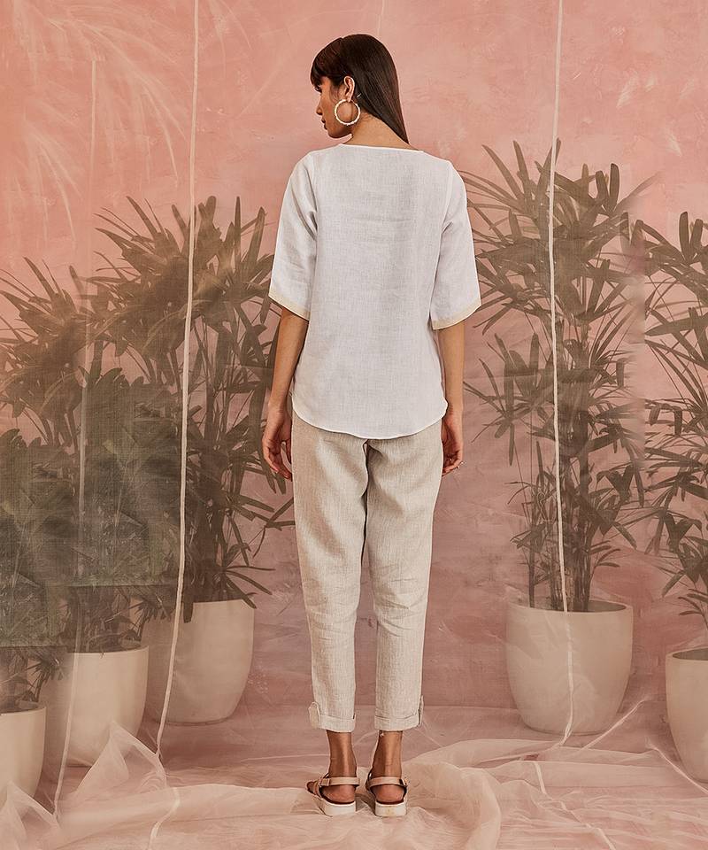 | Product Description | Comfort Fit Contrasting Color Front Paneled Top With Multicolor Paneled Elasticated Pant With Pockets. Ensemble For An On The Go Spontaneous Wear. Fall'in For The Timeless Linen.Note : Bag Is Not Included With This Combo