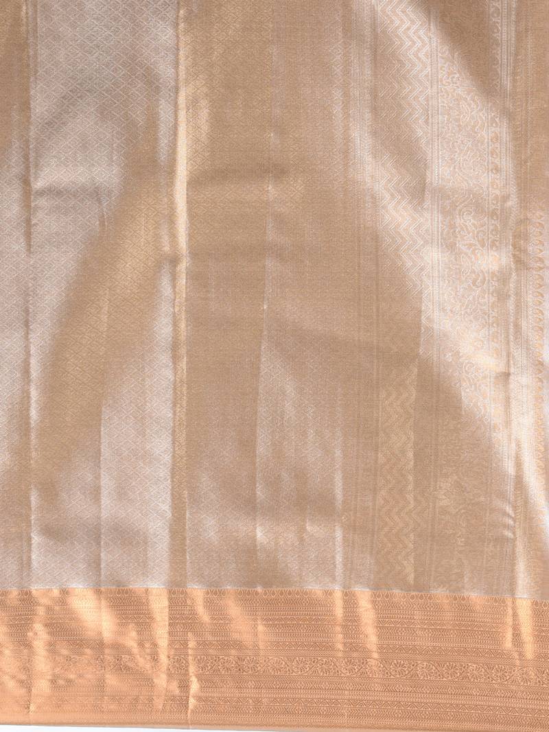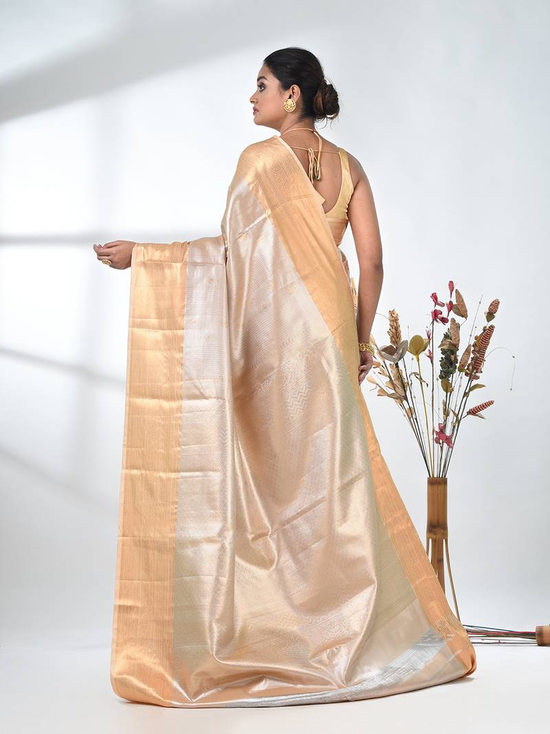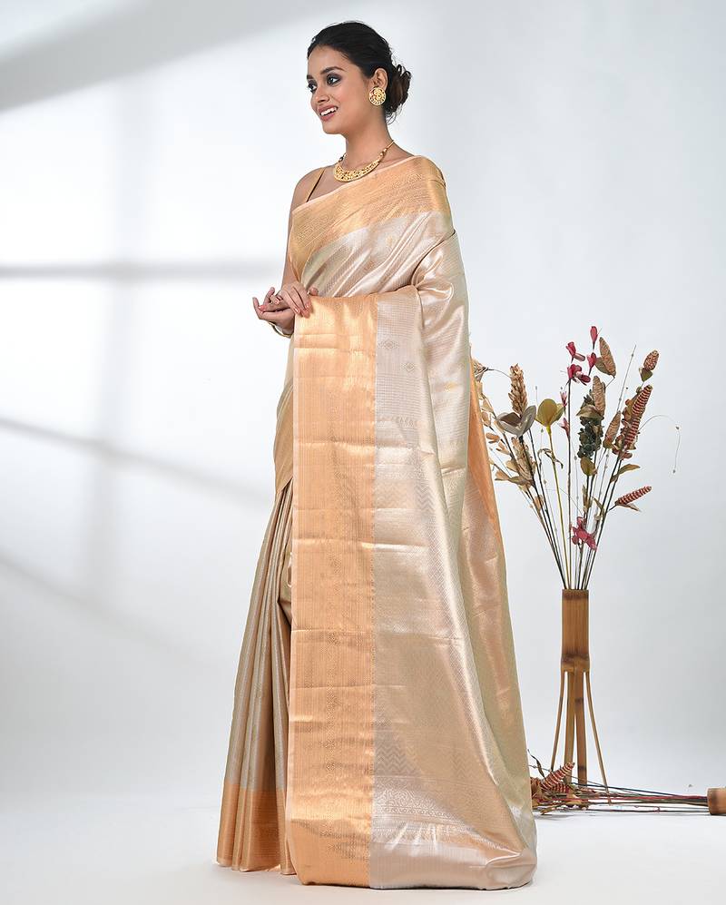 Beige tissue silk blend kanjivaram saree with intricate border