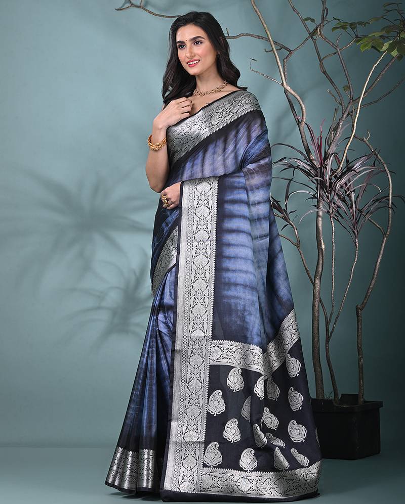 Black & grey silk blend tie & dye saree with intricate border