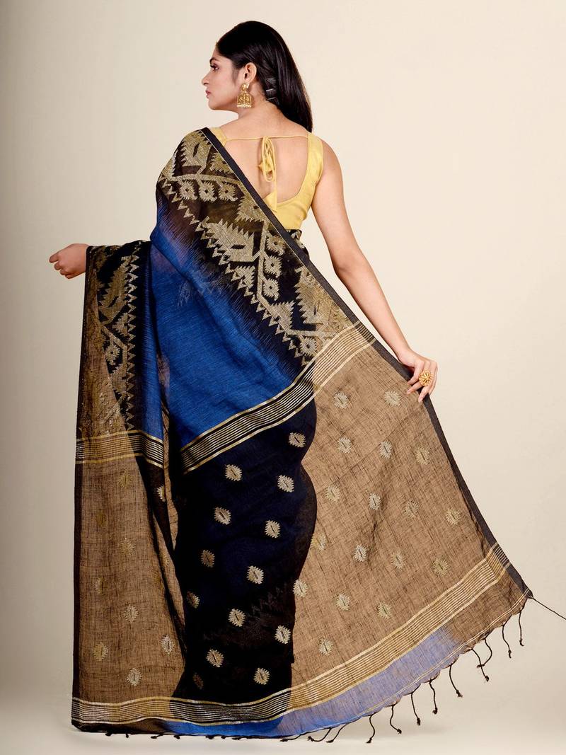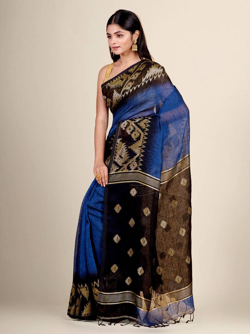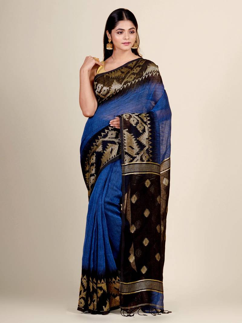 | Product Name | Blue Hand Woven Linen Saree With Blouse | |