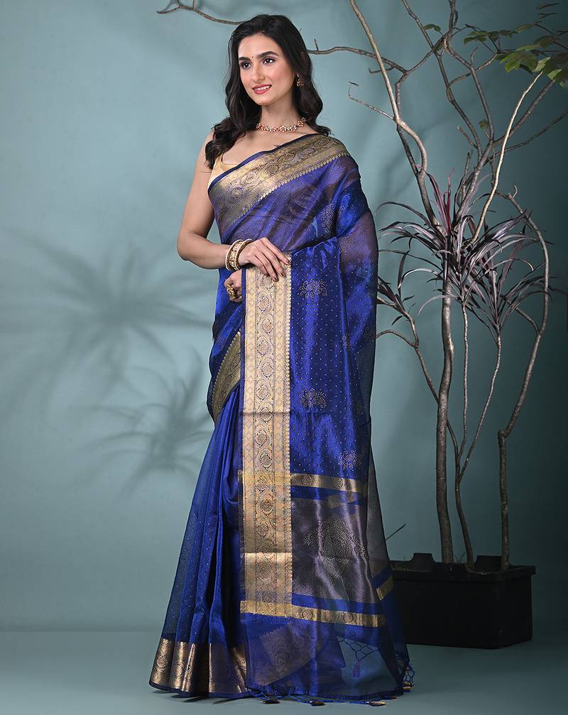 Blue tissue saree with stone detailing