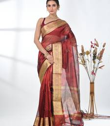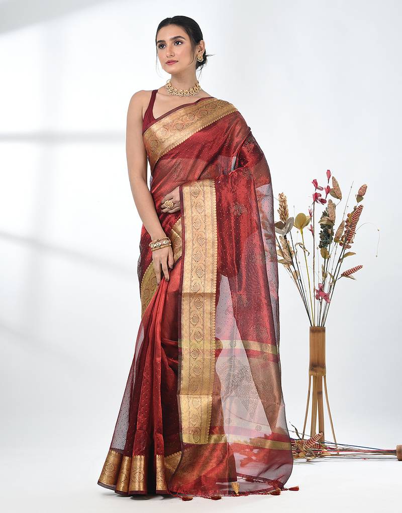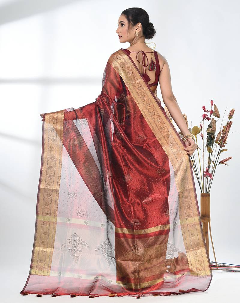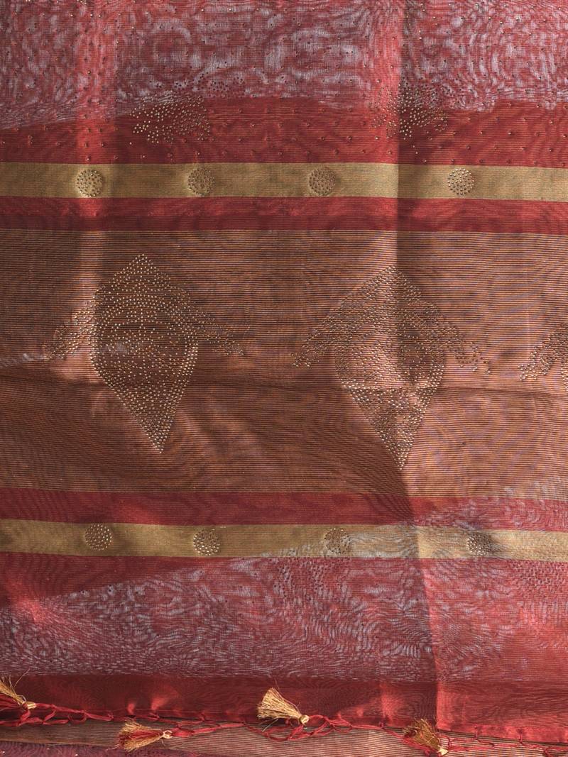 | Product Name | Dark Red Tissue Saree With Stone Detailing | |