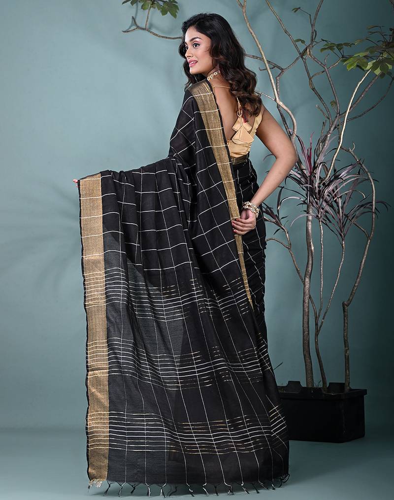 | Product Description | Add A Touch Of Traditional Elegance To Your Wardrobe With This Stunning Black Art Silk Saree. Featuring A Subtle Checkered Pattern With A Beautiful Golden Border, This Saree Is Perfect For Festive Occasions Or Special Events. Crafted From High Quality Art Silk, It Offers A Smooth, Luxurious Feel While Ensuring Comfort Throughout The Day. Pair It With Statement Jewelry For A Truly Regal Look. |