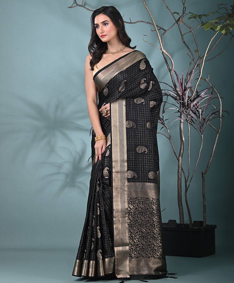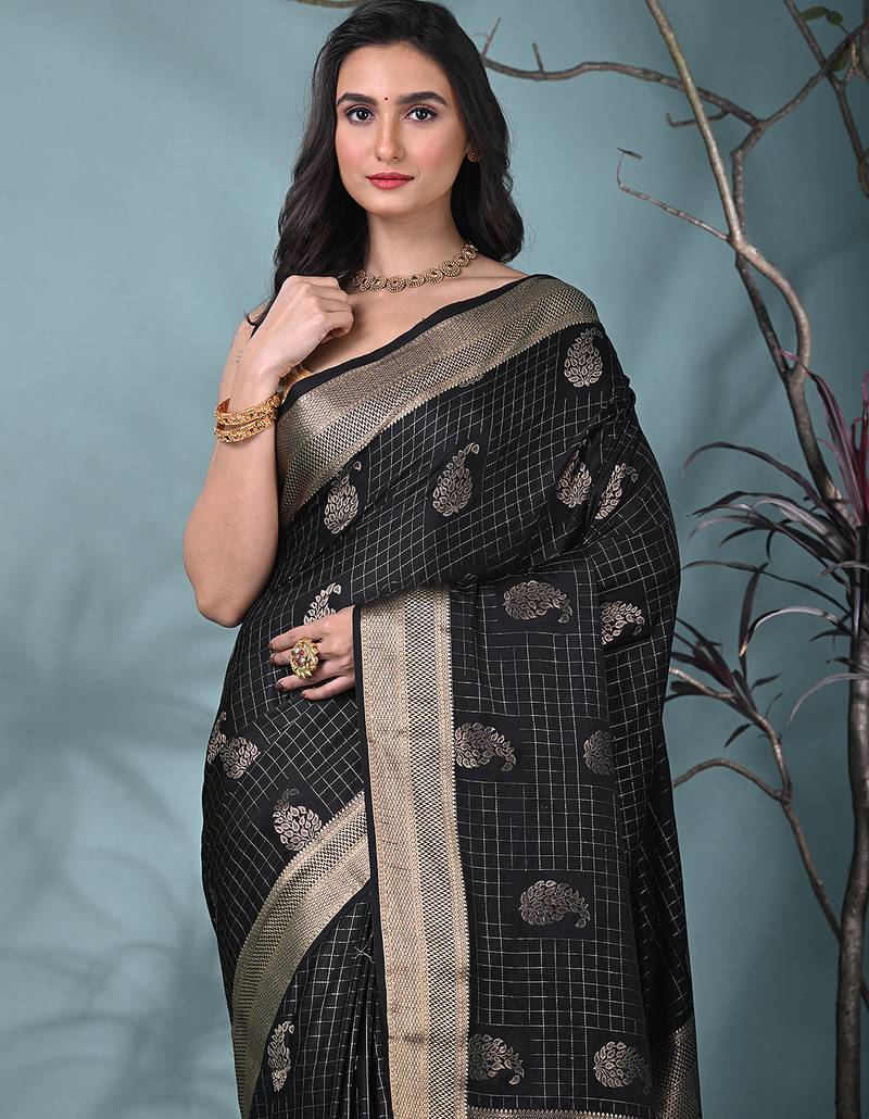 Elegant black silk blend saree with intricate brocade work