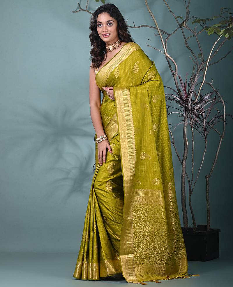 | • | Saree | : | Color- Olive / Fabric- Silk Blend |
