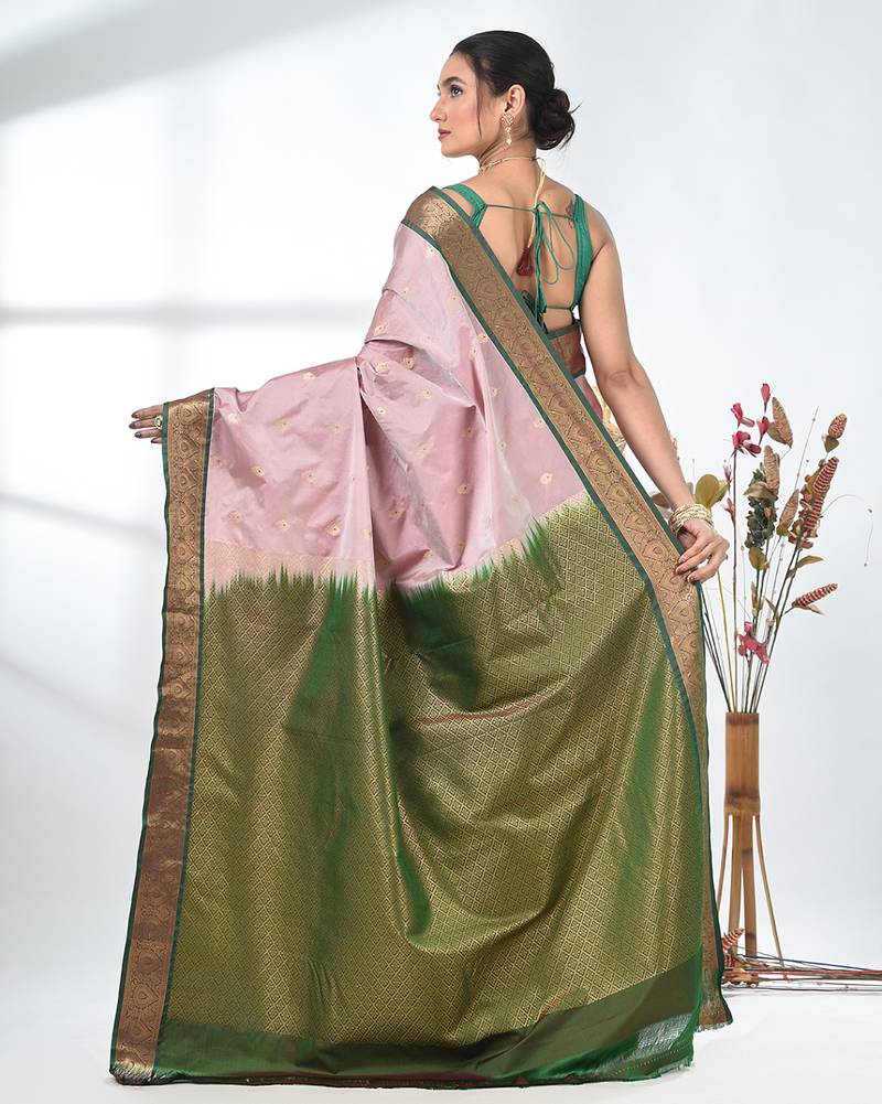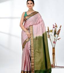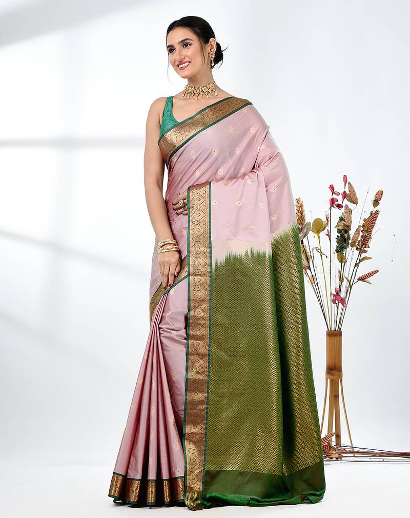 Elegant pale pink south silk blend saree with green zari border