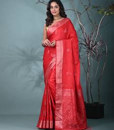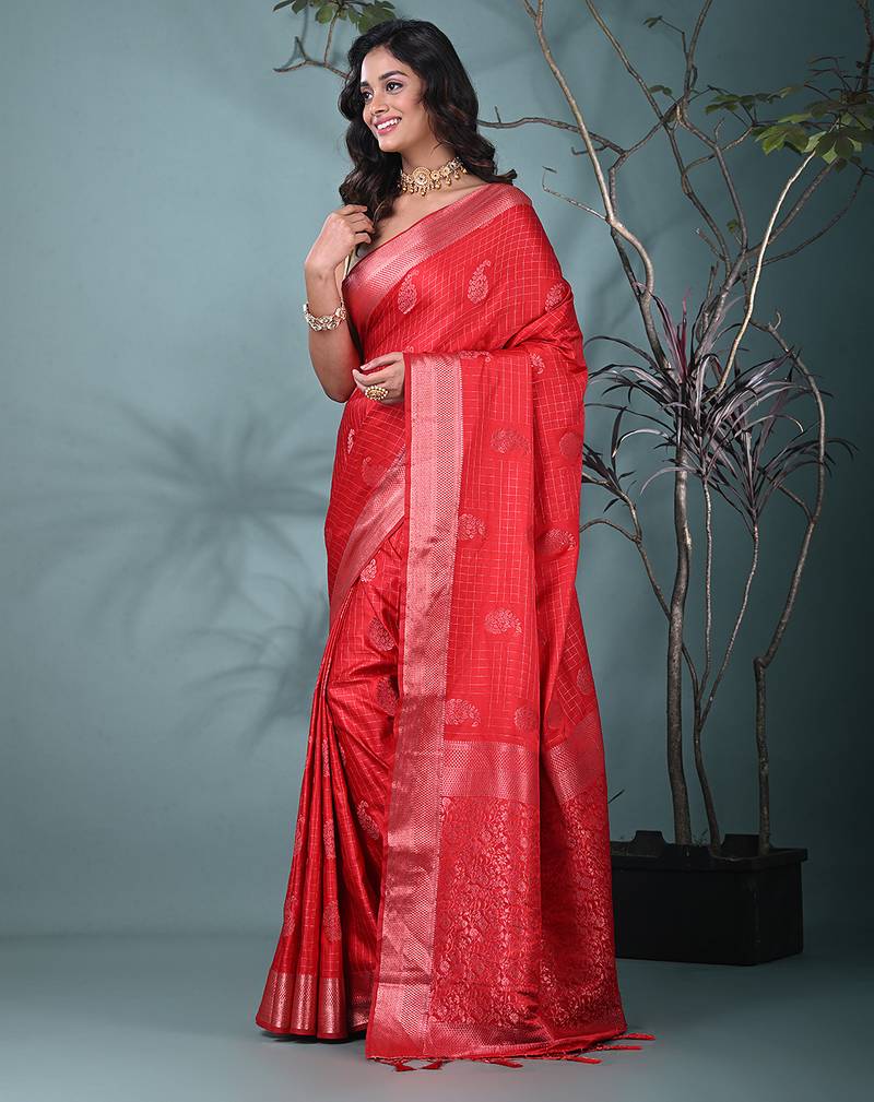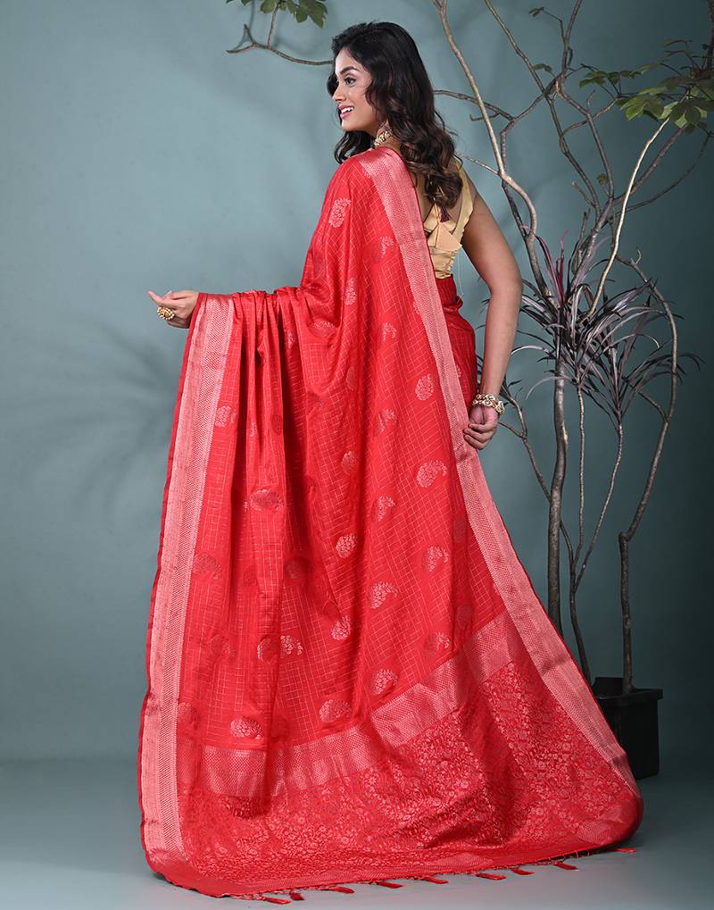 Elegant red silk blend saree with intricate brocade work