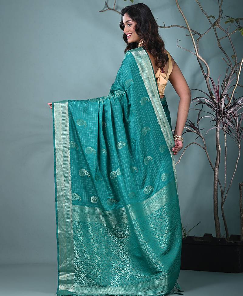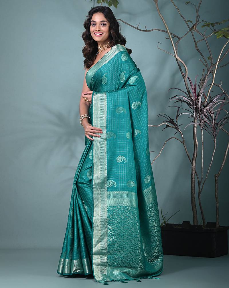 Elegant teal silk blend saree with intricate brocade work