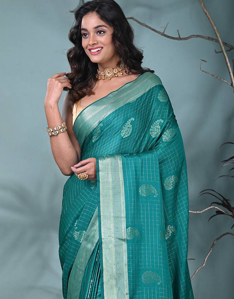| • | Saree | : | Color- Teal / Fabric- Silk Blend |