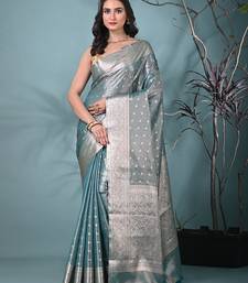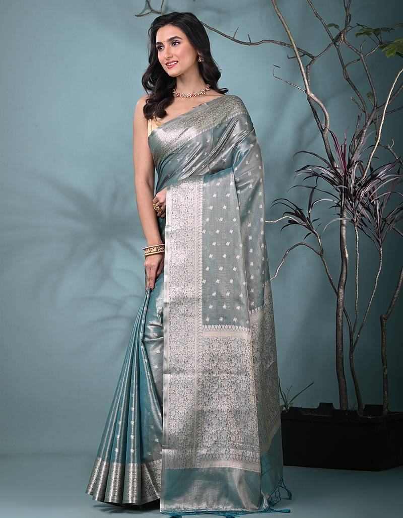 Elegant teal tissue saree with intricate border