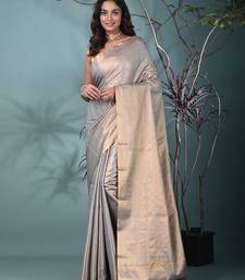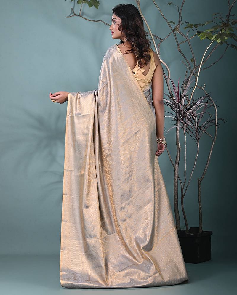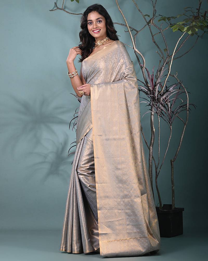 Exquisite grey tissue brocade saree with intricate zari work