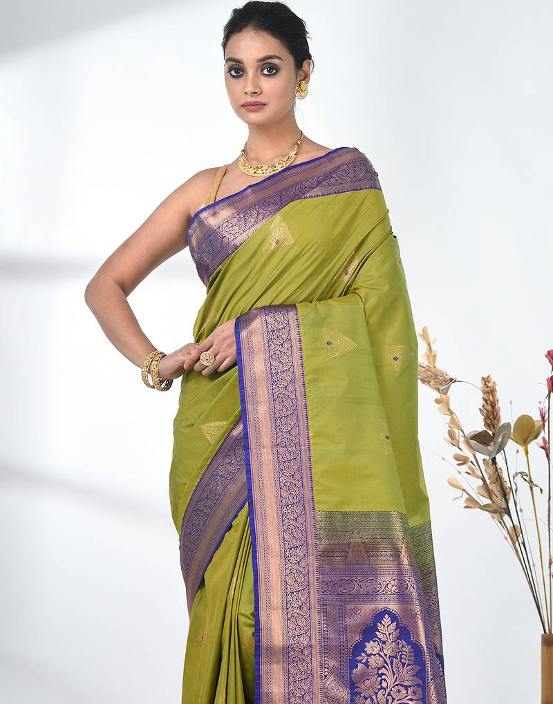 | Product Description | Embrace Timeless Elegance With This Exquisite Lime Green Pure South Silk Saree. The Luxurious Fabric Offers A Soft And Radiant Drape, Enhancing The Grace Of The Wearer. The Saree Features Intricate Zari Work Throughout, With A Stunning Contrast Of Blue At The Border, Adding A Regal Touch. The Rich Golden Zari Motifs And Detailed Floral Designs In The Border Further Elevate Its Beauty, Making It The Perfect Choice For Weddings, Festivals, And Special Occasions. The Fine Quality South Silk Fabric Ensures Comfort And Sophistication, While The Bold Color Combination Creates A Striking And Elegant Look. Pair It With Traditional Jewelry And A Sleek Blouse To Complete Your Festive Look. |