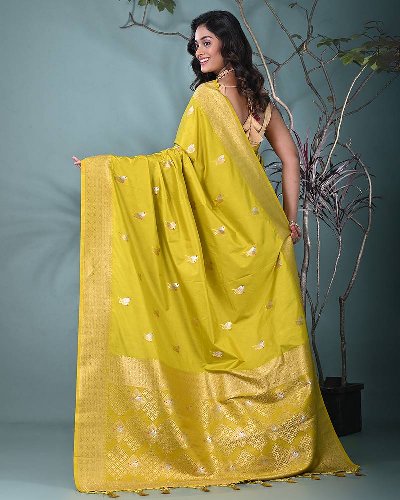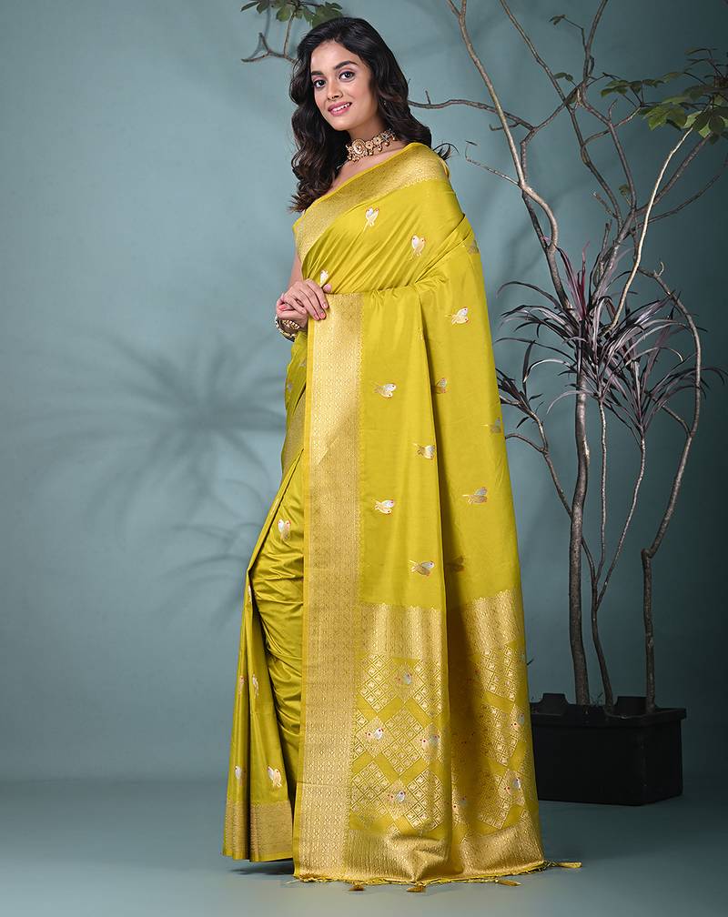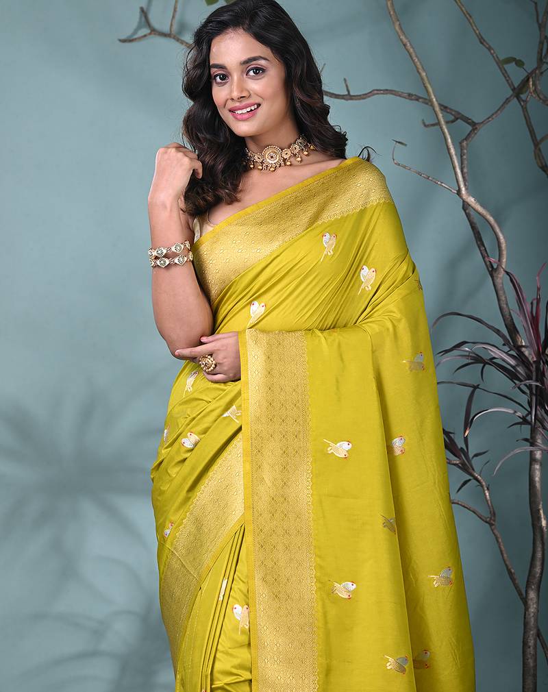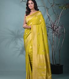 Graceful lime green silk blend blend saree with intricate zari work